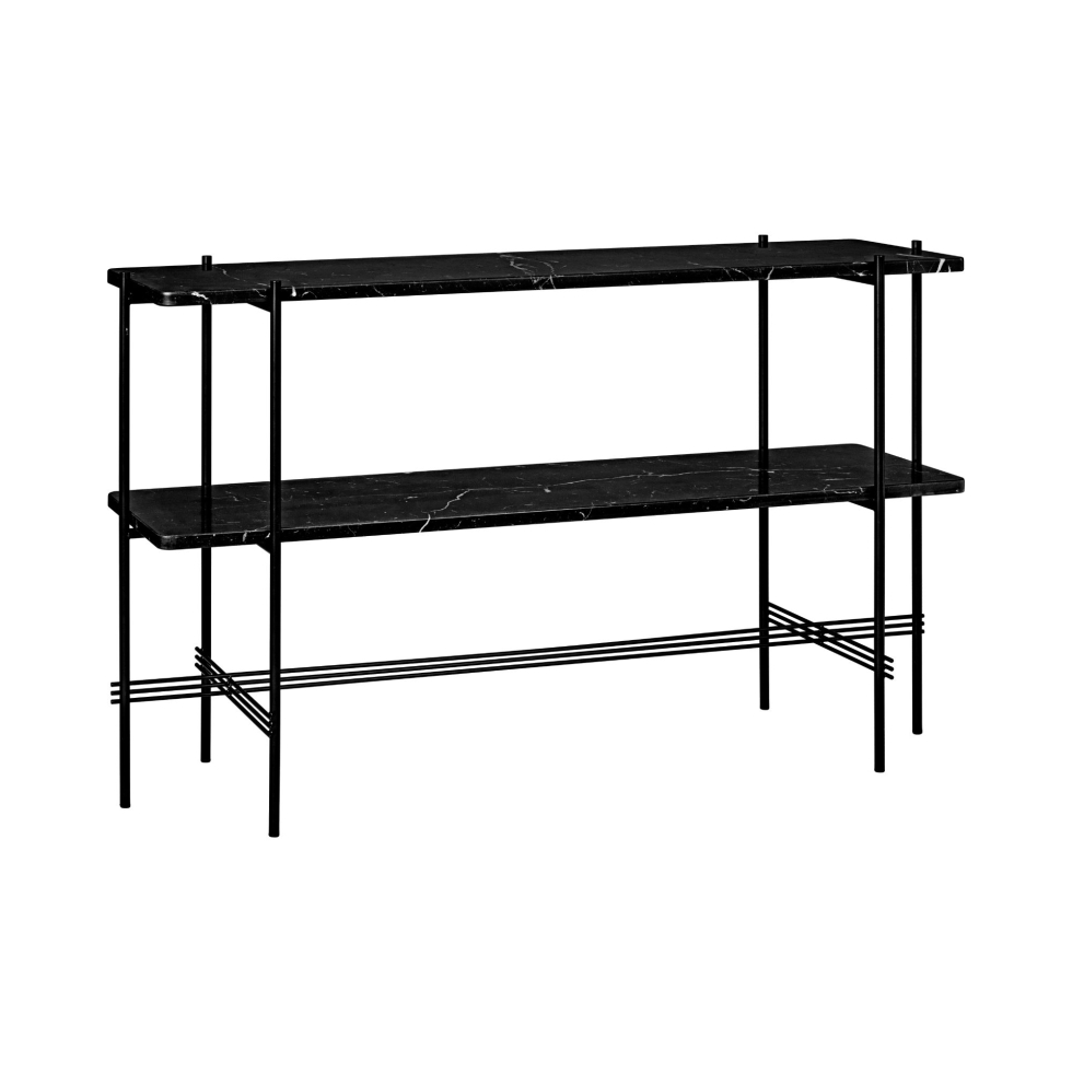 Konsola od marki Gubi z kolekcji Gam Fratesi, stworzonej przez duet projektantów: Stine Gam i Enrico Fratesi. Autorzy w swoich projektach łączą ze sobą klasyczny styl duńskich mebli z włoską koncepcją, co owocuje stylowym minimalizmem – cechą charakterystyczną kolekcji Gam Fratesi. Konsola ma bardzo prostą konstrukcję. Dwa, eleganckie blaty wykonane z marmuru dostępne są w dwóch wersjach kolorystycznych. Rama została wykonana z czarnej stali lub mosiądzu.