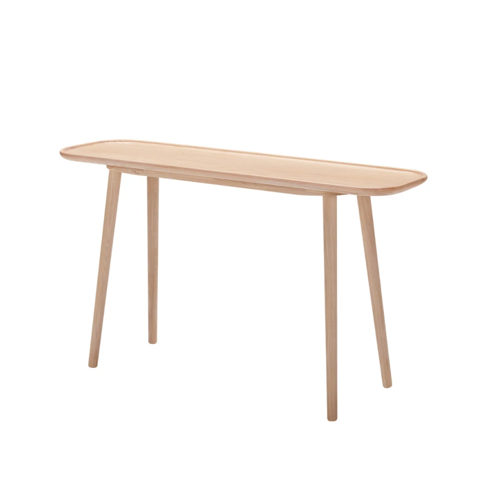 Konsola Love od marki Sits została wykonana z litego drewna dębowego lub orzechowego. Została wzmocniona wieloma warstwami lakieru matowego. Warstwa ochronna charakteryzuje się wysoką odpornością na zarysowania, wysoką temperaturę oraz zabrudzenia. Zaokrąglone brzegi są dowodem najwyższego poziomu sztuki rzemieślniczej. Szczegóły dotyczące dostępnych wariantów kolorytycznych znajdują w karcie katalogowej produktu.