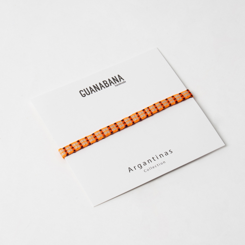 Kultowa bransoletka Argantina 120 marki Guanabana to arcydzieło rzemiosła i wzornictwa. Zaprojektowana została w Madrycie, ręcznie utkana w Kolumbii ze 120 wodoodpornych nici akrylowych. Zachwyca unikalnymi, geometrycznymi wzorami pełnymi kolorów. Misterny splot i dbałość o szczegóły sprawia, że jest to prawdziwe dzieło sztuki. Każda bransoletka posiada regulowane zapięcie zapewniające wygodne dopasowanie do ciała. Medalion ma wygrawerowaną mantrę marki: „Bądź pozytywny!”- przypominającą o tym, by podchodzić do każdego dnia z optymizmem.