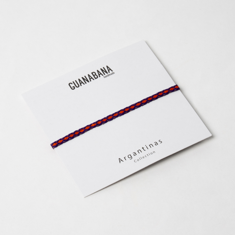 Kultowa bransoletka Argantina 120 marki Guanabana to arcydzieło rzemiosła i wzornictwa. Zaprojektowana została w Madrycie, ręcznie utkana w Kolumbii ze 120 wodoodpornych nici akrylowych. Zachwyca unikalnymi, geometrycznymi wzorami pełnymi kolorów. Misterny splot i dbałość o szczegóły sprawia, że jest to prawdziwe dzieło sztuki. Każda bransoletka posiada regulowane zapięcie zapewniające wygodne dopasowanie do ciała. Medalion ma wygrawerowaną mantrę marki: „Bądź pozytywny!”- przypominającą o tym, by podchodzić do każdego dnia z optymizmem.