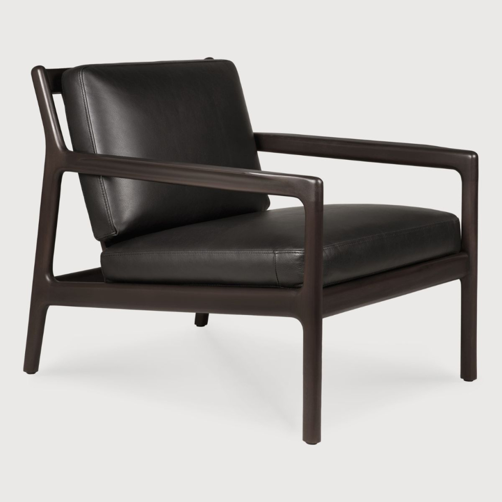 Fotel Jack o czystych liniach inspirowany skandynawskim modernizmem. Składa się z ramy z drewna mahoniowego w kolorze ciemnobrązowym, zabezpieczonego lakierem oraz poduszek wypełnionych pianką wysokoelastyczną. Tapicerka dostępna w trzech wersjach kolorystycznych: skóra brązowa lub czarna oraz tkanina w kolorze beżowym. Uzupełnieniem fotela jest dedykowany podnóżek, razem stanowią wygodny zestaw wypoczynkowy.