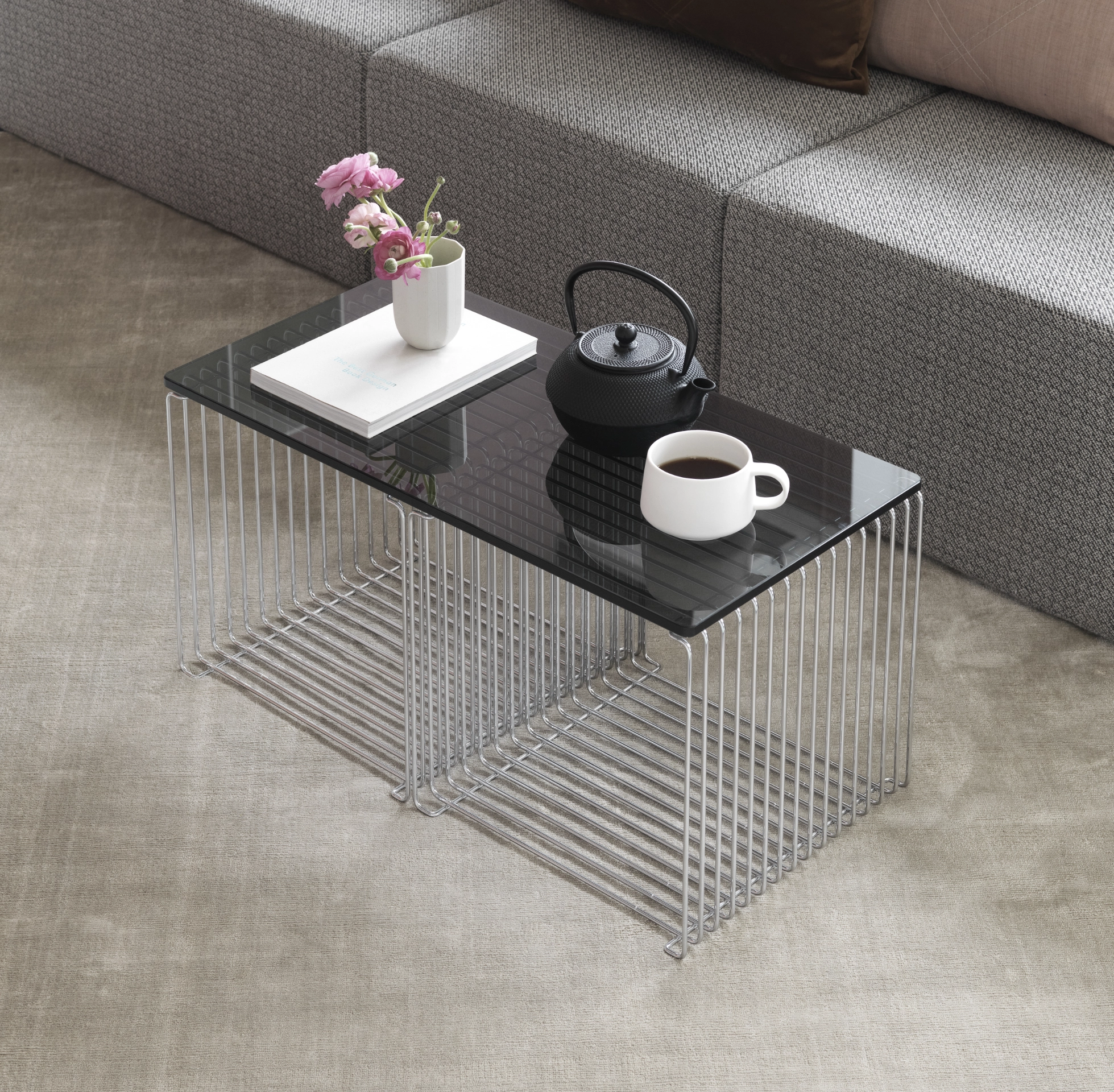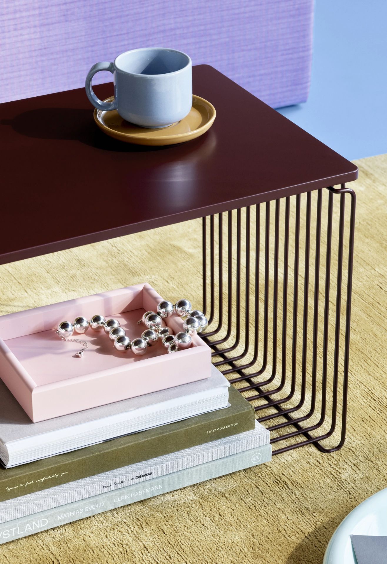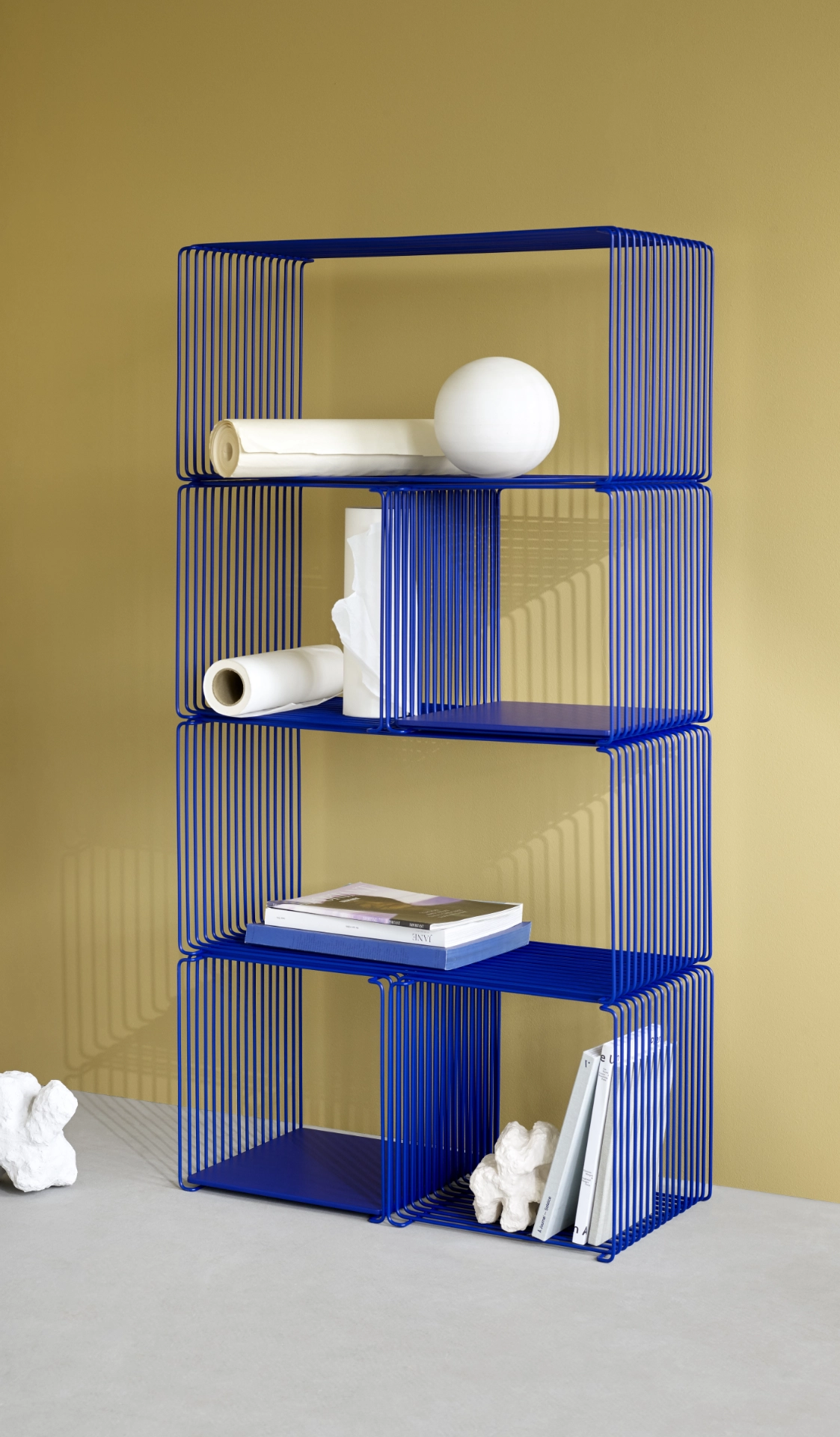 Kolekcja Panton Wire to modułowy system półek zaprojektowany w 1971 roku przez Verner Panton, łączący surowość stalowej siatki z ponadczasową elegancją. Lekka, industrialna forma pozwala tworzyć elastyczne konfiguracje – od pojedynczych modułów ustawionych na podłodze, przez kompozycje ścienne, aż po ażurowe przegrody przestrzeni. System dostępny jest w różnych głębokościach i kolorach, a nowe moduły prostokątne oraz wersje podwieszane umożliwiają budowanie bardziej asymetrycznych, dynamicznych układów. Dodatkowe blaty i półki wewnętrzne pozwalają spersonalizować całość i dopasować ją do charakteru wnętrza.