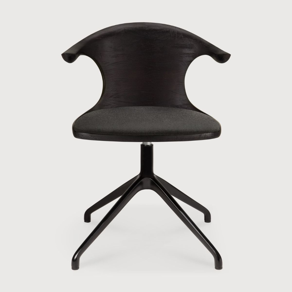 Kolekcja Flow wyróżnia się miękkimi liniami i zaokrągloną formą, nadającą jej lekko retro, ale nowoczesny charakter. Projekt został stworzony z myślą o elastycznych, współczesnych przestrzeniach pracy. Krzesło łączy lite drewno tekowe z wygodnym siedziskiem, oferując stabilne i komfortowe podparcie podczas pracy przy biurku, oraz regulację siedziska. Subtelna forma sprawia, że łatwo wpisuje się zarówno w klasyczne, jak i nowoczesne wnętrza.