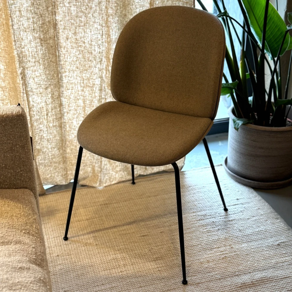 Krzesło z tapicerowanym siedziskiem Beetle marki Gubi swoim wzornictwem przywołuje na myśl meble lat 70-tych. Jak inne produkty marki Gubi, Beetle jest połączeniem minionego designu ze współczesnymi trendami. Obity został wytrzymałą tkaniną Enzo Degli Angiuoni plain 0025 o naturalnym składzie - 40% z wiskoza, 30% wełna, 20% len, 10% nylon.