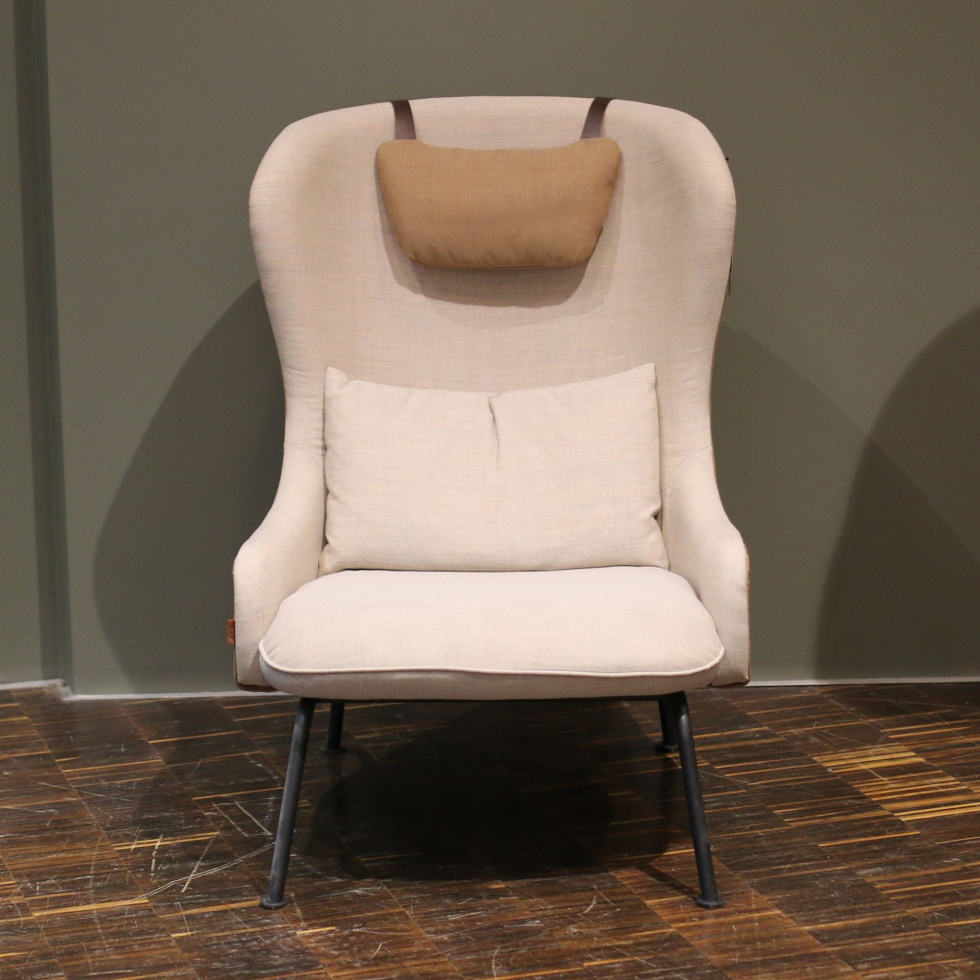 Nowoczesna wersja klasycznego fotela typu uszak. Ma smukłą formę, wyprofilowane kontury i wysokie oparcie, dzięki czemu jest bardzo ergonomiczny i wygodny. Miękkie linie podkreślają jego obłą formę i dodają lekkości. Dodatkowy komfort zapewnia poduszka podlędźwiowa oraz poduszka pod głową. Wypełnienie: fotel - pianka wysokoelastyczna, poduszki - pierze i kulka silikonowa. Przód fotela tapicerowany jest tkaniną Canvas 2/0216, natomiast tył oraz poduszka pod głowę – Canvas 2/0254, co subtelnie podkreśla jego dopracowany charakter. Zastosowana gładka tkanina wełniana o składzie 90% wełna, 10% nylon cechuje się dobrą odpornością na użytkowanie, trwałością oraz przyjemnym, naturalnym wykończeniem.