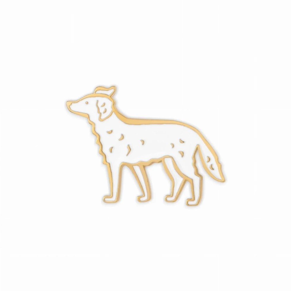 Pin autorstwa Marceliny Jarnuszkiewicz, przedstawiający polskiego psa wędrownego. Zapinany pozłacanym zapięciem typu "motylek". Ręcznie wykonany w Polsce. Sprzedawany w specjalnie zaprojektowanym kartoniku. Idealny na prezent.