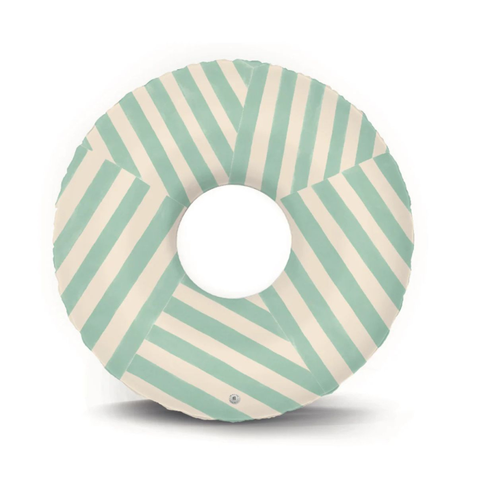 Duże koło do pływania z wzorem przypominającym włoskie parasole w paski. Idealne do zabawy w basenie, nad morzem czy jeziorem. Drukowane z obu stron, wykonane ręcznie metodą sitodruku – każda sztuka jest wyjątkowa i może lekko różnić się detalami.