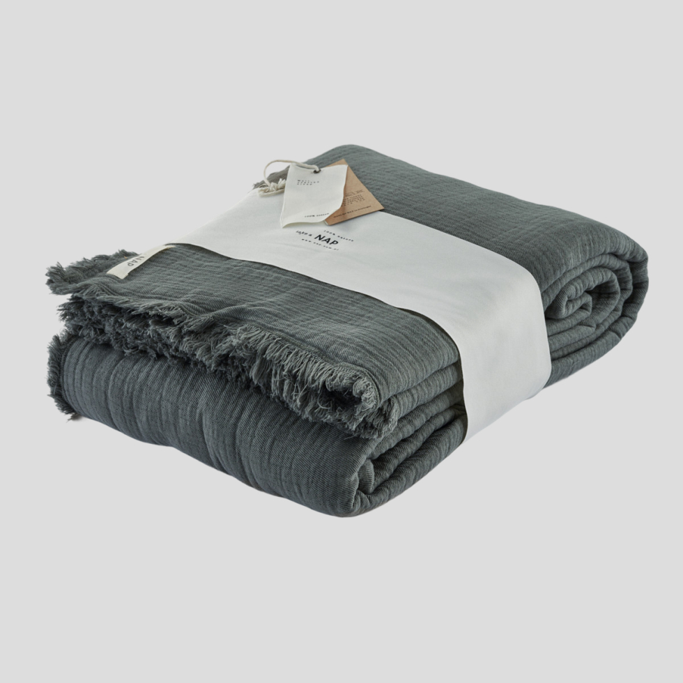 Narzuta z kolekcji Terra wykonana jest z delikatnego dla skóry muślinu. Narzuta jest przewiewna oraz przyjemna w dotyku. Dodatkowo muślin jest wyjątkowo wytrzymały oraz odporny na zagniecenia i zabrudzenia. Lekkości kolekcji nadaje ozdobny brzeg z krótkimi frędzlami.