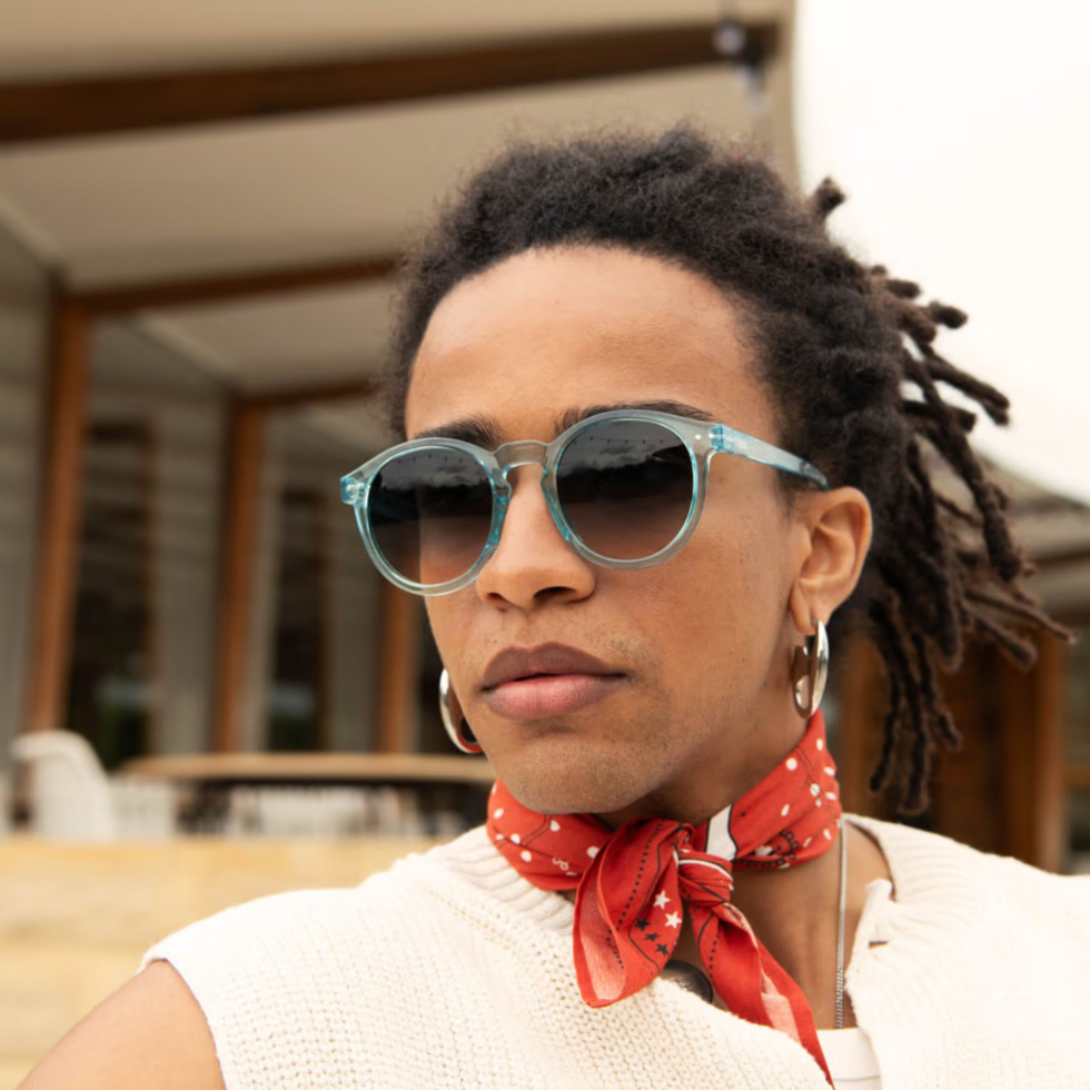 Okulary IZIPIZI #M Turquoise Stone przenoszą w świat turkusowych wód i dalekich podróży. Ich błyszcząca oprawka w mineralnym, intensywnym odcieniu oraz powiększona, okrągła sylwetka tworzą odważny, pełen energii look, który natychmiast przyciąga wzrok. Niebieskie soczewki gradalne dodają spojrzeniu głębi i oferują pełną ochronę UV, sprawiając, że ten uniseksowy, zaprojektowany w Paryżu model staje się idealnym kompanem każdej wyprawy, wprowadzając odrobinę wakcyjnego światła do codzienności.