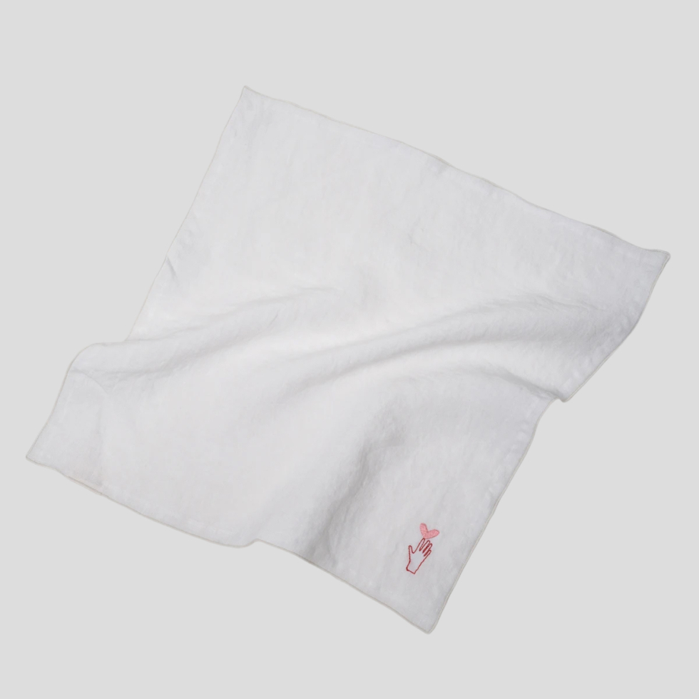 Serwetka z haftem rączka z sercem, 40x40, white