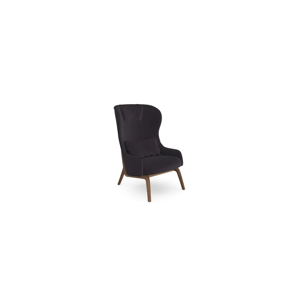 Wygenerowany SKU: ABA / fotel / Keystone 17-ebony / z poduszką i skórzanymi pasami / skóra Harness Shoulder dark brown / drewniana noga / orzech lity olejowany /