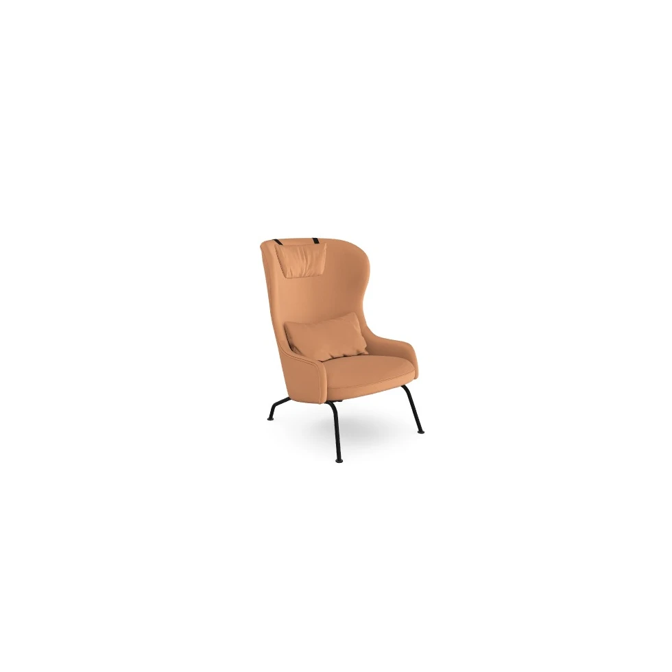 Wygenerowany SKU: ABA / fotel / Q341 Sesame 3182 / z poduszką i skórzanymi pasami / skóra Harness Shoulder black / metalowa noga niska / / lakier proszkowy kolor czarny