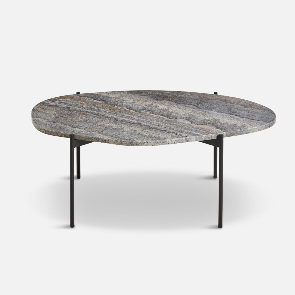 Kolekcja stolików kawowych La Terra autorstwa Agnes Morguet inspirowana naturą wyróżnia się organicznymi kształtami oraz stonowanymi kolorami. Blat stolika został wykonany z trawertynu. Mogą wystąpić różnice w kolorze i teksturze ze względu na naturalny charakter kamienia. Rama to metal malowany proszkowo na kolor czarny. W kolekcji dostępne są stoliki w trzech rozmiarach z blatem w dwóch odcieniach: szary melanż oraz kość słoniowa.