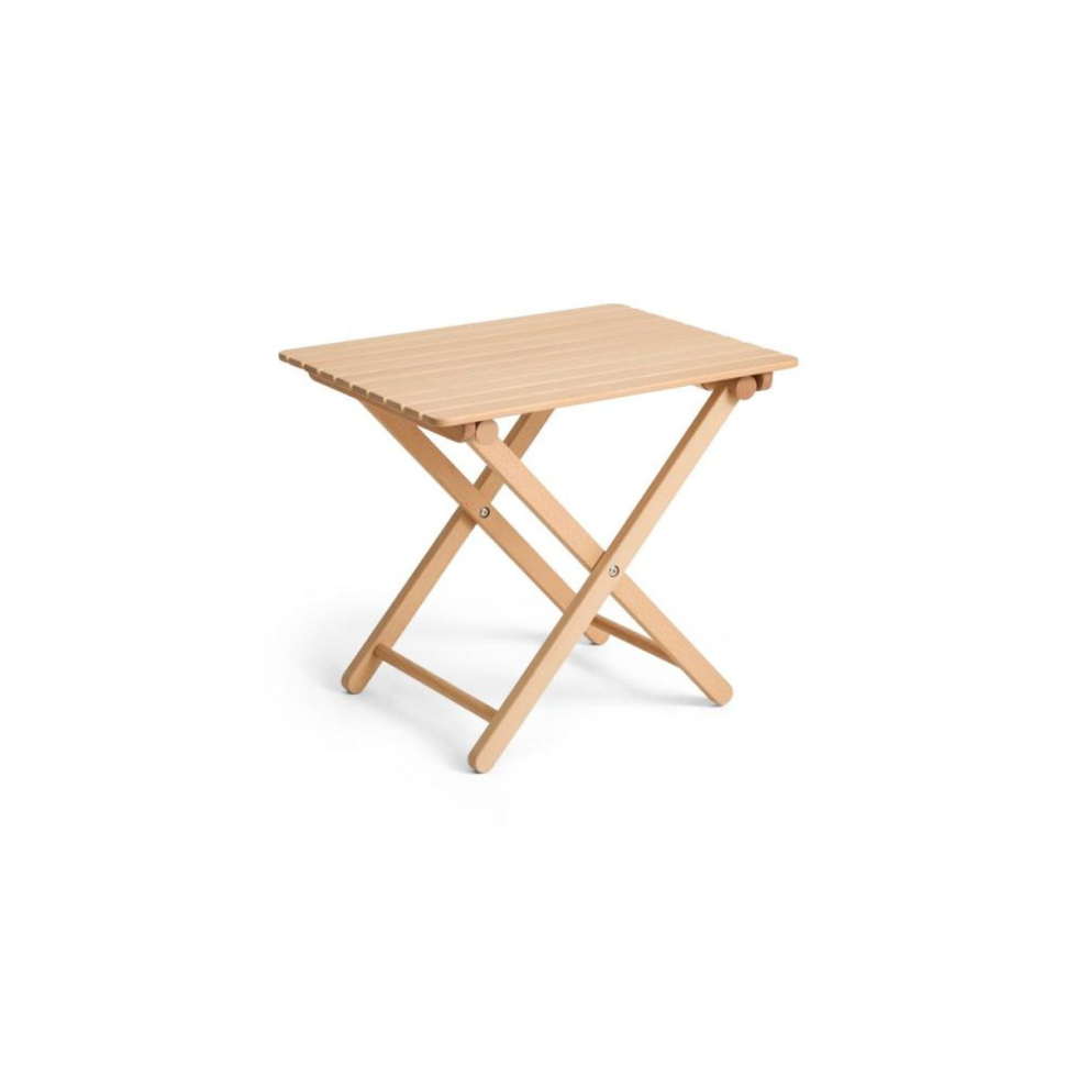 Stolik Outdoor Market Folding Table, zaprojektowany przez Jaspera Morrisona dla kolekcji HAY Outdoor Market, to przenośny mebel łączący funkcjonalność z estetyką idealną do przestrzeni na świeżym powietrzu. Wykonany z lekkiego drewna bukowego, łatwo się składa i transportuje, zapewniając swobodę użytkowania w dowolnym miejscu na zewnątrz. Dostępny w dwóch rozmiarach, wyposażony jest w materiałową torbę z uchwytami, ułatwiającą przechowywanie i przenoszenie.