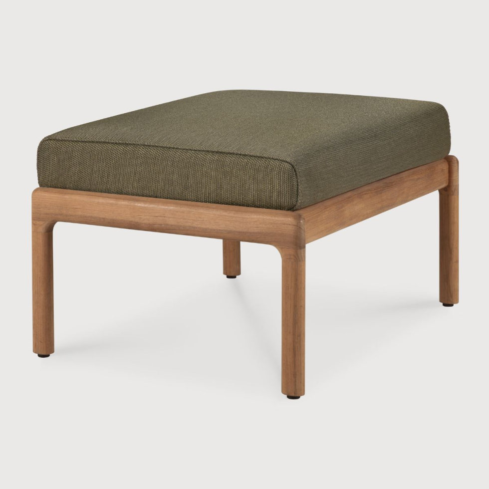 Podnóżek outdoorowy Jack Ethnicraft wykonany z drewna tekowego. Ma solidną konstrukcję i zaokrąglony kształt. Siedzisko z tkaniny polipropylenowej zostało wypełnione szybkoschnącą pianką. Drewno tekowe charakteryzuje się wysoką odpornością na wodę. Zastosowanie starannie dobranych materiałów zapewnia trwałą funkcjonalność przez wiele lat użytkowania.
