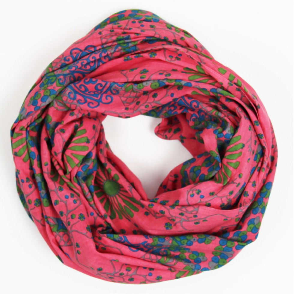 Bawełniany szal od marki Les Belles Vagabondes. Ręcznie wykonany nadruk w Indiach tradycyjną metodą indyjską, który oddaje głębokie,subtelne kolory. Jakość bawełny jest wyjątkowa, a materiał jest lekki i przyjemnie miękki. Wszystkie produkty Les Belles Vagabondes wykonywane są w warsztacie odpowiedzialnym społecznie w Indiach, przy użyciu tuszy wolnych od AZO, bez żadnego ryzyka dla środowiska i zdrowia. Sprzedawany w ładnej materiałowej torbie prezentowej.