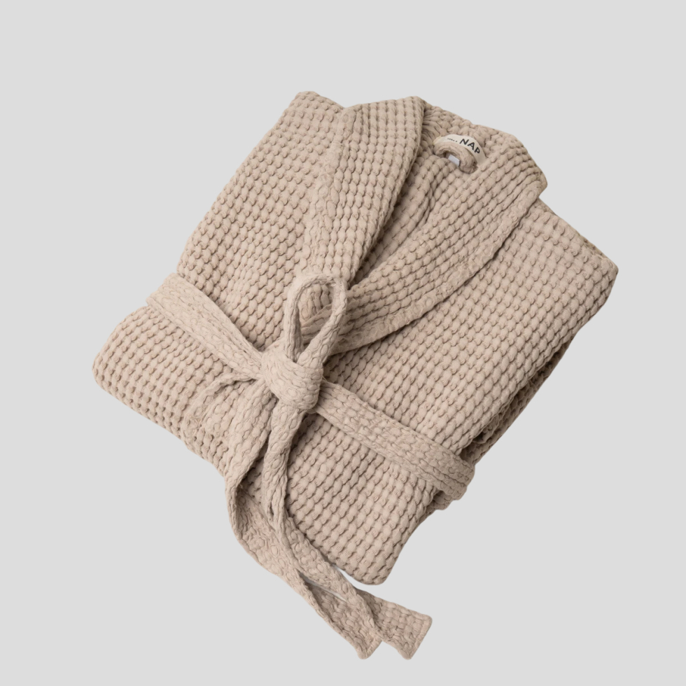 Nasza nowa kolekcja szlafroków wzbogaciła dobrze znaną linię tekstylną Favo. Wykonane zostały ze 100% bawełnianej tkaniny o waflowej strukturze przypominającej plaster miodu. Charakteryzują się niezwykłą miękkością, przewiewnością oraz doskonałą absorpcją wilgoci. Jest to idealny wybór dla każdego, kto ceni sobie komfort i elegancję. Dzięki unikalnej strukturze tkaniny, szlafrok idealnie dopasowuje się do kształtów ciała, dając poczucie otulenia i komfortu. Uniwersalny krój sprawia, że jest on odpowiedni zarówno dla kobiet, jak i mężczyzn. Dostępne są w trzech rozmiarach: S, M i L, XL oraz w czterech eleganckich wariantach kolorystycznych: seashell, camel, atlantic blue i slate.