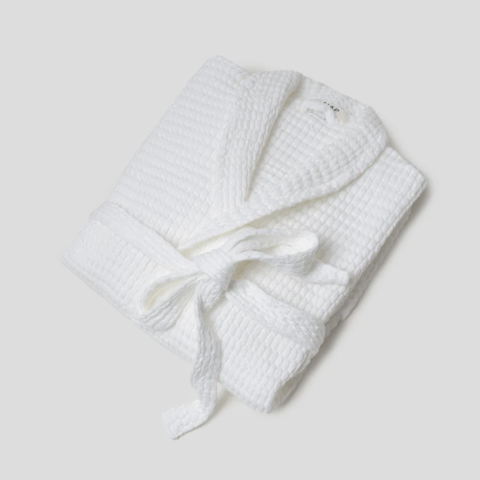 Nasza nowa kolekcja szlafroków wzbogaciła dobrze znaną linię tekstylną Favo marki take a NAP. Wykonane zostały ze 100% bawełnianej tkaniny o waflowej strukturze przypominającej plaster miodu. Charakteryzują się niezwykłą miękkością, przewiewnością oraz doskonałą absorpcją wilgoci. Jest to idealny wybór dla każdego, kto ceni sobie komfort i elegancję. Dzięki unikalnej strukturze tkaniny, szlafrok idealnie dopasowuje się do kształtów ciała, dając poczucie otulenia i komfortu. Uniwersalny krój sprawia, że jest on odpowiedni zarówno dla kobiet, jak i mężczyzn. Dostępne są w trzech rozmiarach: S, M i L, oraz w czterech eleganckich wariantach kolorystycznych: seashell, camel, atlantic blue i slate.