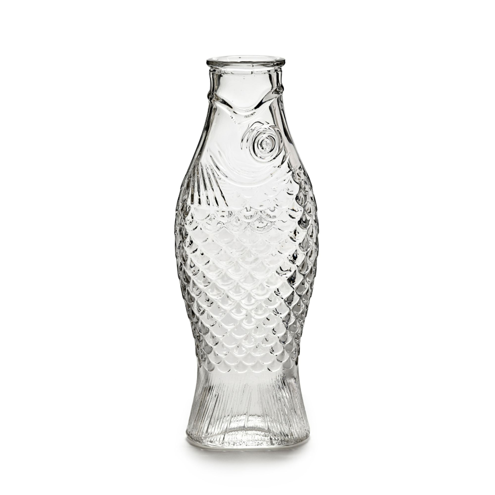 Jednym z ciekawszych elementów kolekcji Fish & Fish marki Serax jest ta przezroczysta szklana butelka autorstwa Paoli Navone. Jej wyjątkowy kształt i funkcjonalność sprawiają, że przyciąga wzrok na stole. Butelka jest dostępna w różnych kolorach, a przezroczysta wersja pozwala w pełni docenić jej zawartość. To idealne połączenie użyteczności i designu.